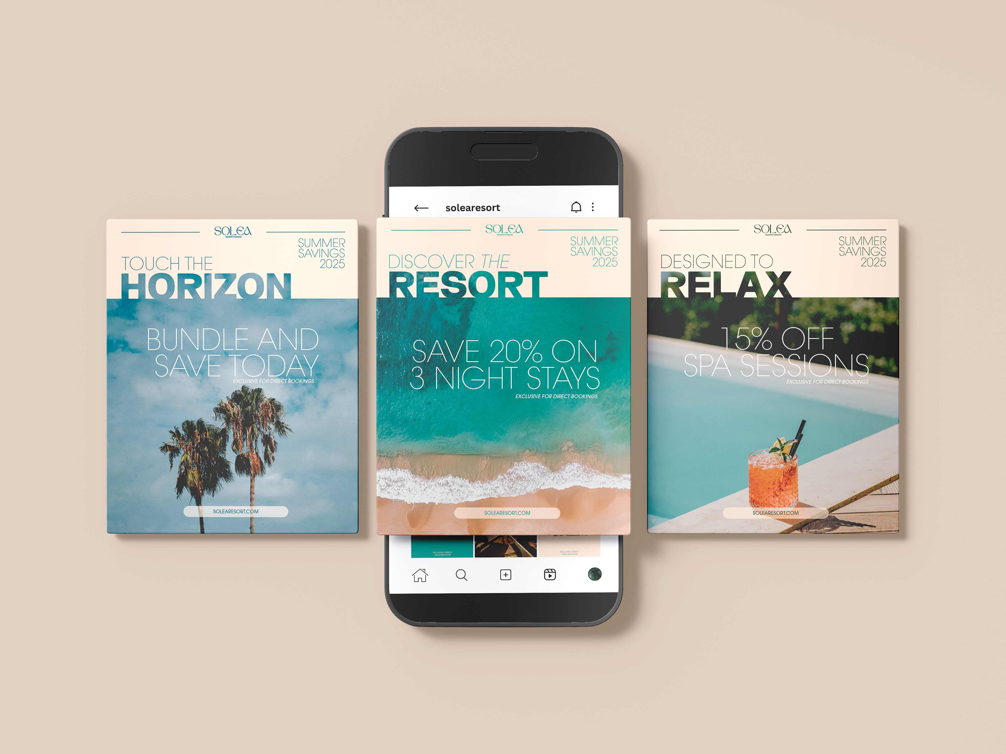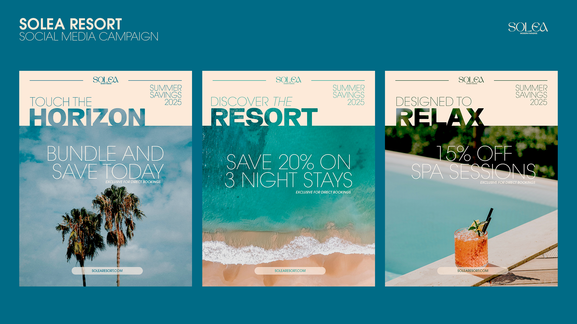 2024 | A social-media campaign for a modern resort. Clean visuals, bold typography and a striking aesthetic bring the brand’s relaxed luxury to life online.